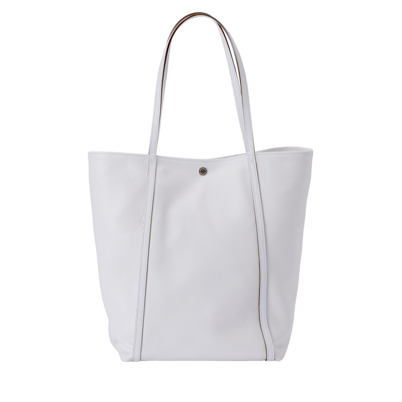 オリジナルロゴプレートオリジナルロゴプレートブランド名を刻印したメタルパーツは、丁寧に高い精度で加工された高級感のあるオリジナルパーツ。 ホワイトのレザーと相まってバッグを際立たせます。ファスナーは、YKK社製でファスナーの貴婦人とも言われるEXCELLA(エクセラ:エレメントひとつひとつの全面に入念な磨きをかけた滑らかさが特徴)を使用しています。