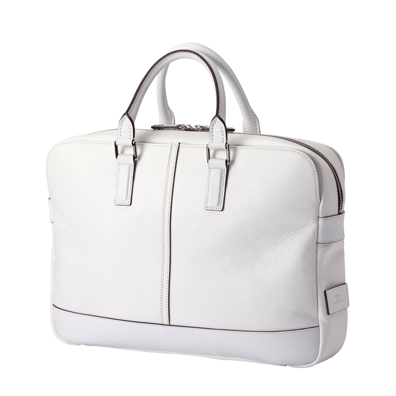 “Deep White”を追求したイタリア産の上質なシュリンクレザーと高級感のあるメタルパーツが個性を際立たせます。ほどよく肉厚なシュリンクレザーはソフトな風合いが特徴。この風合いを生かしたつくりにこだわり、キャリーバッグからブリーフケース、小物に至るまで緻密な設計のもとに日本の職人の技術を注いで作っています。